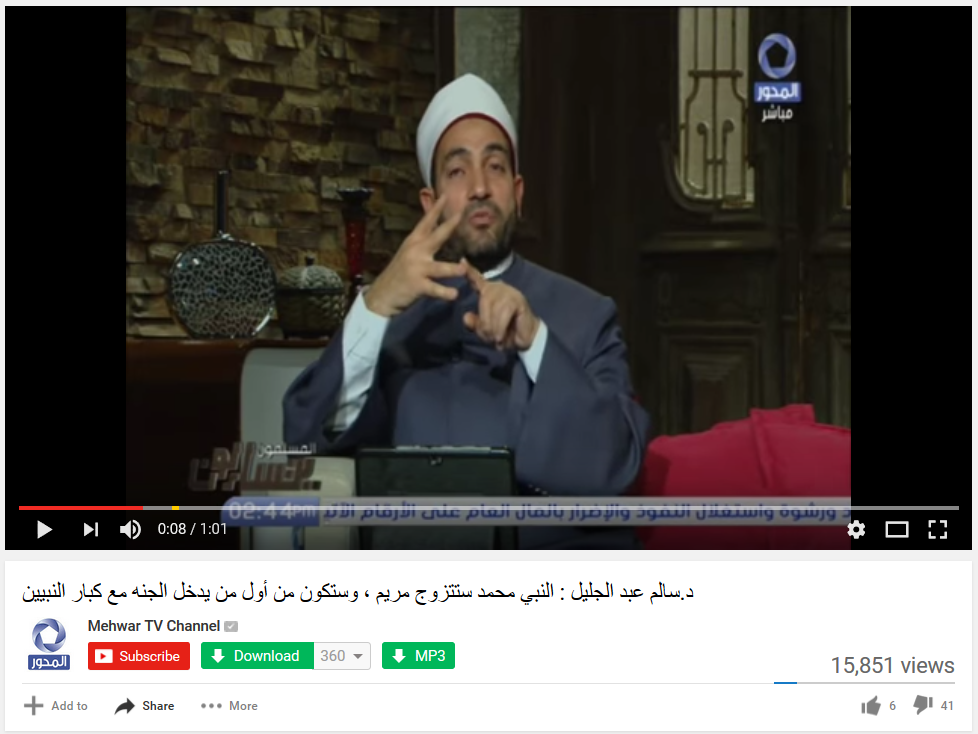 Leia mais: Clérigo islâmico: "Maomé irá tirar a virgindade de Maria, Mãe de Jesus, no paraíso islâmico"