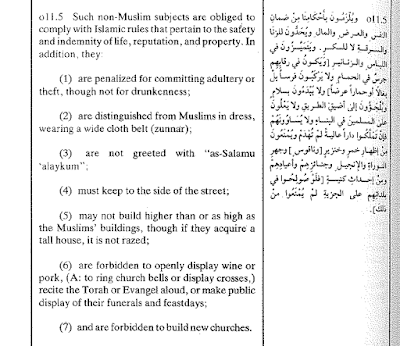 Agora, veja o que dizem as Condições de Umar, e como elas foram incorporadas na Sharia. No tocante aos "cidadãos não muçulmanos" eles: